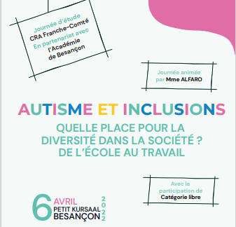 Pour aborder cette thématique, dont les dimensions sont multiples et complexes tant sur le plan éthique, politique, qu’économique, cette journée d’étude sera l’occasion de réunir les personnes avec autismes, les familles, les professionnels de l’Education et du Soin – libéraux, sanitaires ou médico-sociaux – de notre région.